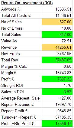With all the targets, methods and costs agreed a simple set of equations can be built to make digital marketing accountable. Every area of ROI can be referenced quickly including spend, sales, margin, leads and more.